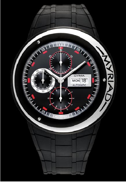 That having been said, the new range of Myriad watches from Cyma are certainly myriad in their designs and very handsome indeed. The Chrono New World has an automatic Valjoux 7750 chronograph movement, this black and red version of the Myriad range is the star of the collection.