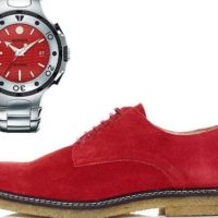 Maybe you have the guts to wear red suede shoes but I doubt I could even begin to pull it off. Nonetheless, we are reliably informed they are one of fashion’s hottest shoe colours for men this year.. The shoes are from Kurt Geiger at around $180.00, and we’ve teamed them up with a Movado Series 800 stainless steel watch with red dial. Red, in case you didn’t know, sends out strong sexual signals, so with this combo you’ll have sexy feet and an irresistible wrist. The watch is 42mm with luminous hands and markers and the date at 3 o’clock, price $490.00 on Ebay.