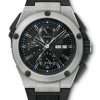 The Ingenieur Double Chronograph Titanium, which is also called a split-seconds chronograph; a rattrapante uses an additional central seconds hand that allows the wearer to simultaneously measure two events. In terms of design it seems IWC are looking to compete with the likes of Audemars Piguet and Hublot Big Bang.