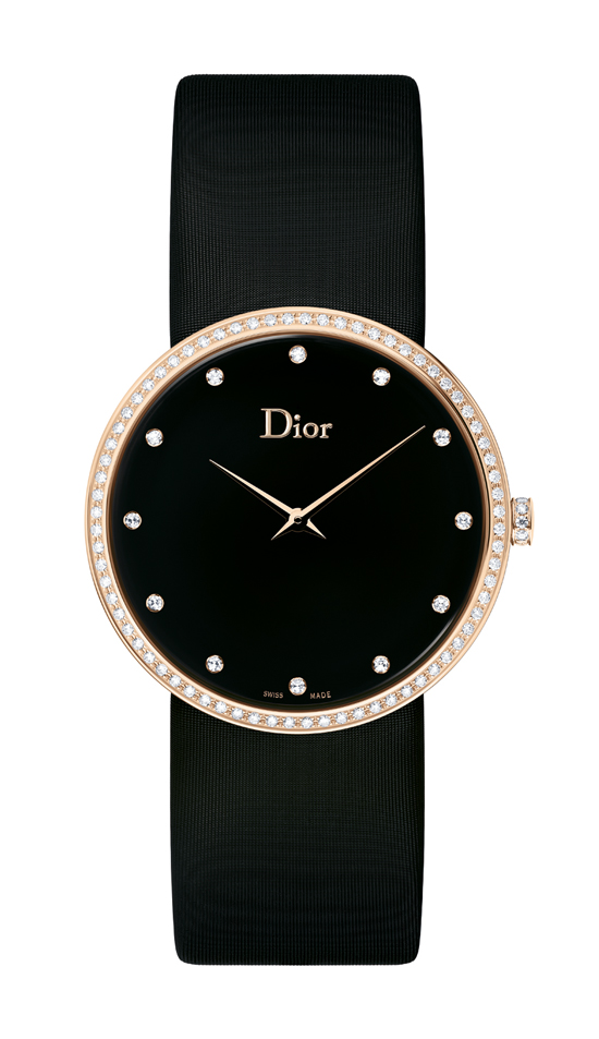 Expert jewellers’ knowledge of stone setting together with Swiss technical ability ensures that the La D de Dior 38mm pink gold, diamonds and onyx is a fine extension of the already effortlessly luxurious collection. The deep inkiness of the black onyx dial draws you in, the melanoid mysteriousness punctuated only by a delicate diamond at each hour and the finely tapered, Dauphine-style hands in pink gold. Black onyx is more popular but in fact less common than colour-banded versions, making a piece like this all the more valuable and iconic. The striking 38mm face sits comfortably between the dimensions of dainty ladies’ watches and mens’ more tenacious timepieces, again reiterating the fact that this is a neutral piece with omnifarious opportunities.