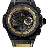 The flange features a 2N gold powder coating and the strap is made from exactly the same gold-coloured synthetic leather as his shoes. This is stitched onto black rubber – a Hublot signature – to guarantee comfort, strength and flexibility.