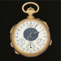In 1989, to celebrate the 150 anniversary of the company, Patek Philippe created the world’s most complicated timepiece, the Calibre 89. A pocket watch similar to the Graves and the Packard, the Calibre 89 has 33 complications and 1,728 unique parts. Its complications include the date of Easter, sidereal time and a celestial chart with 2,800 stars.