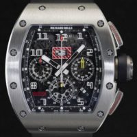 The RM011 Felipe Massa Flyback Chronograph comes in a variety of casings including white gold, rose gold and titanium with a skeletonised dial face. With a 55 hour power reserve, the watch’s automatic winding movement is capable of chronograph function, annual calendar, 60-minute countdown timer, and more. By using the pusher between 4 and 5 o’clock, the running chronograph can be reset without first having to stop the mechanism. It’s a lot of watch as the dimensions are 50mm by 40mm. It runs on a calibre RM011 in-house movement, and was specially made for Felipe Massa by his good friend the watchmaker Richard Mille, who also of course, makes exclusive watches for Rafael Nadal, Bubba Watson and most recently Sebastien Loeb the French rally driver.